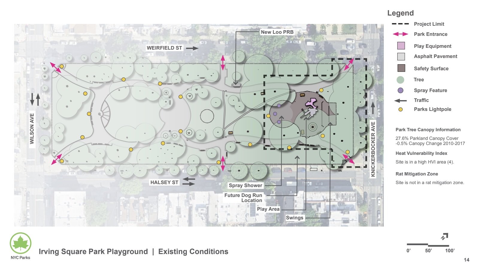 Site survey of Irving Square Park outlining the Project Limit